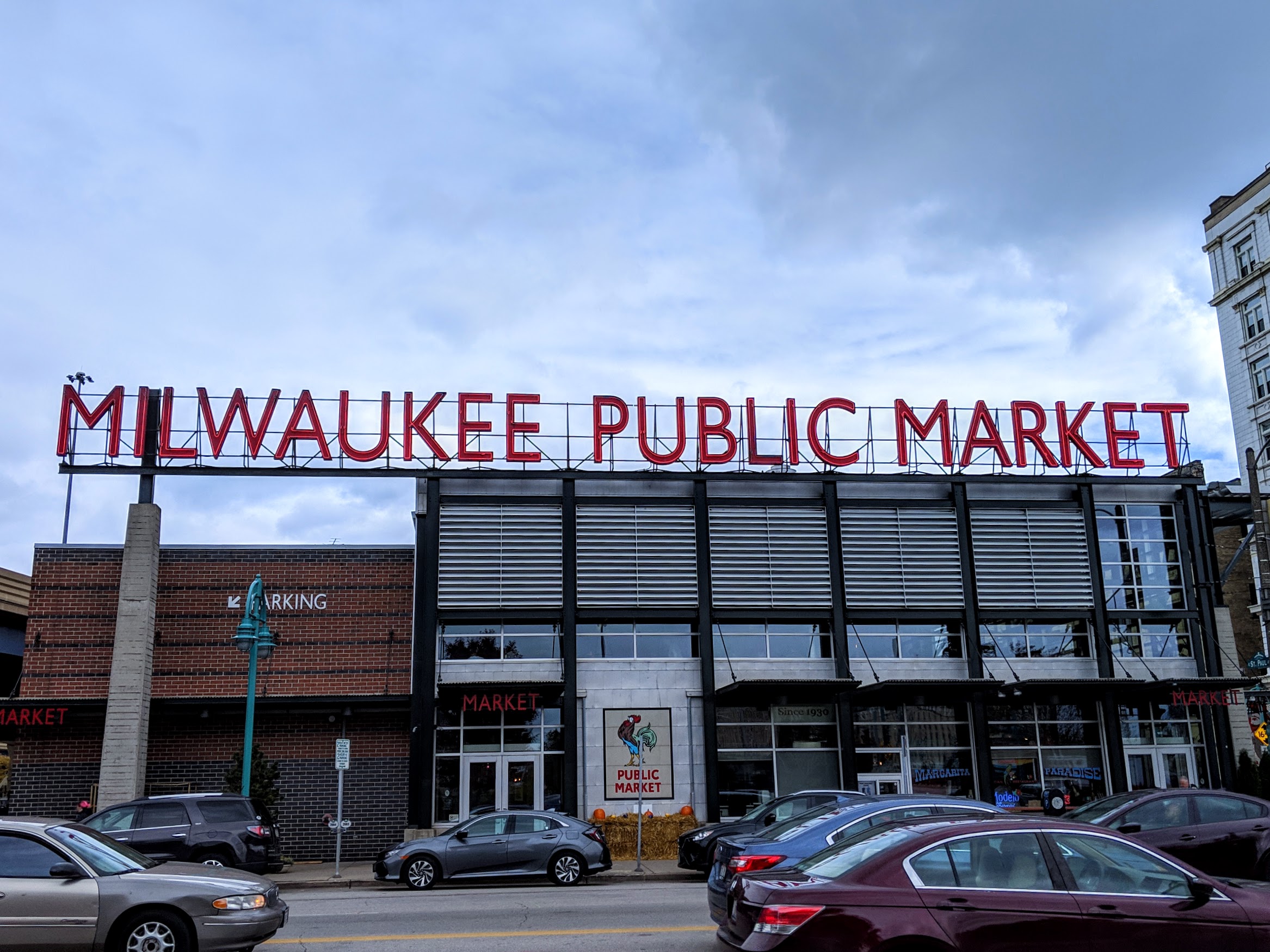 After a wild 5K–think whipping rains, gusty winds, and getting smacked right in the face by multiple leaves…In. My. Face.–we stopped by Milwaukee Public Market for lunch and then it snowed! I said I was embracing fall not winter! It was just a dusting but quite unexpected.