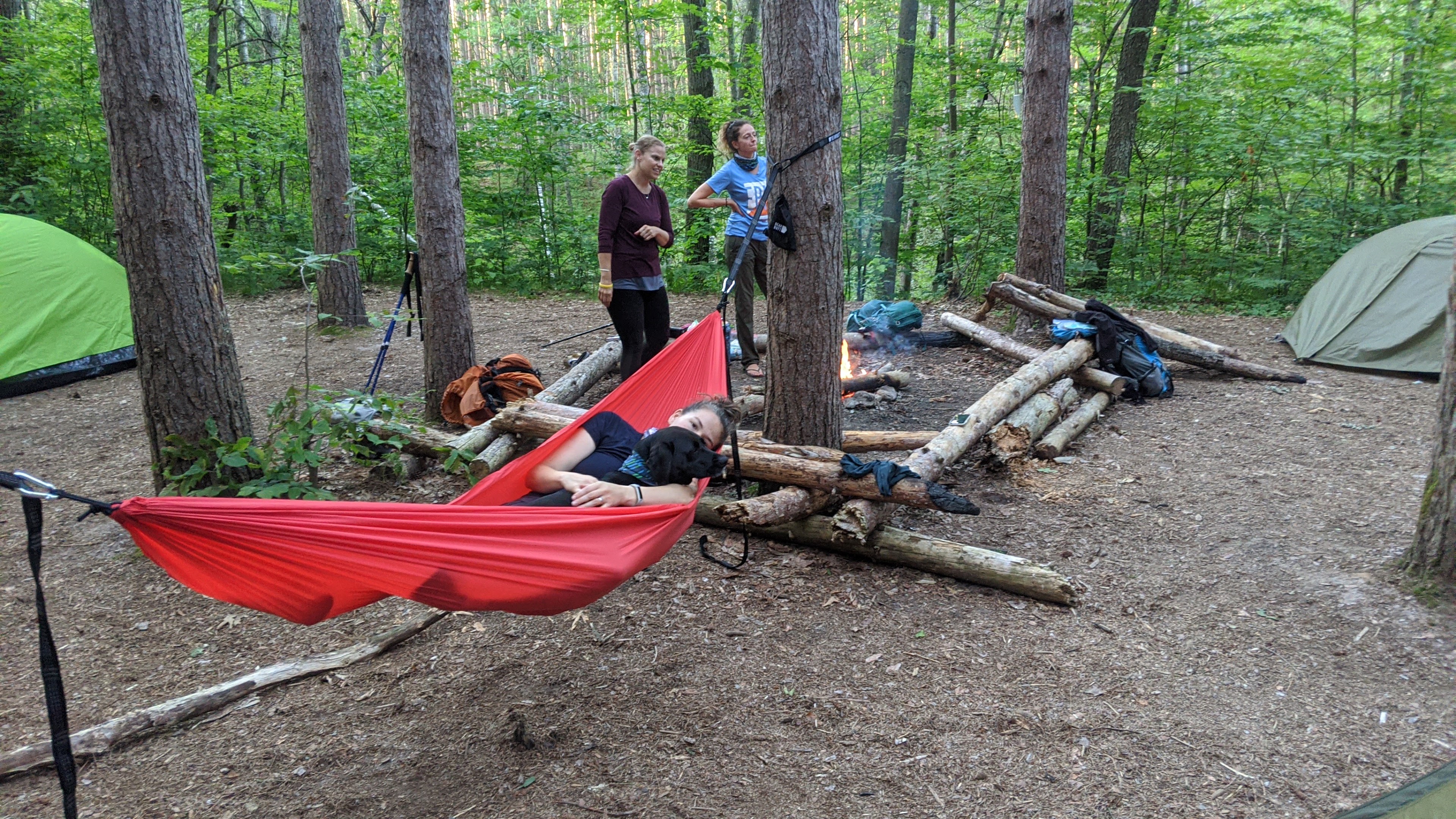 We had planned on getting water from the Manistee River but we were up the side of a steep embankment so it took quite a bit more effort than we had hoped. Once we made it to the water’s edge though we had our own private mini-beach and dipped our sore toes in the cool water. On the way back up a frog jumped on my hand unexpectedly and I screamed and everyone thought I fell off the side of the cliff so that was fun.