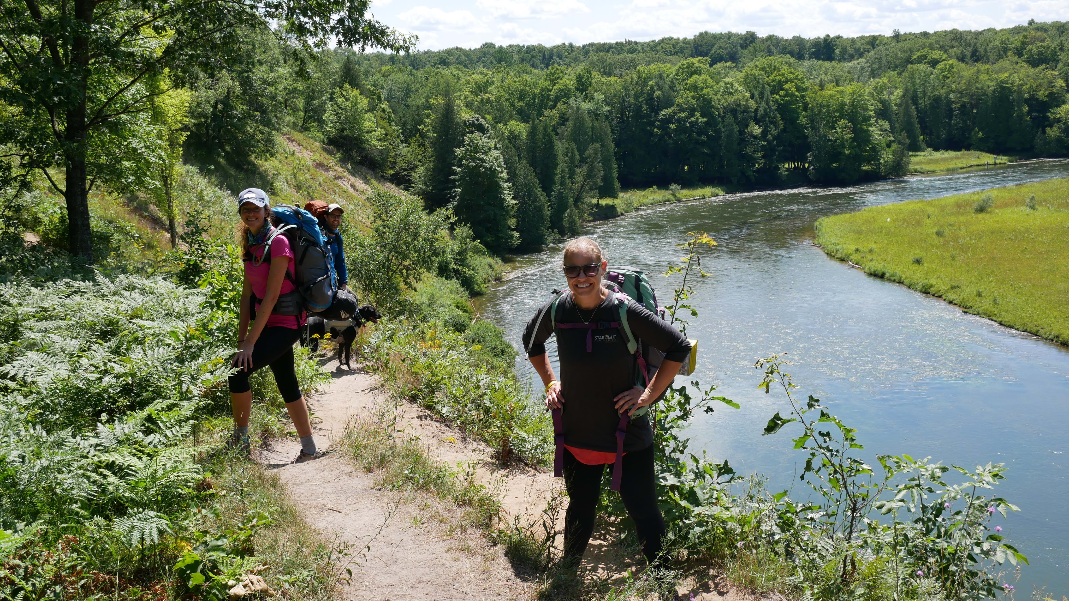 July 6 – We started out fairly early driving 2 hours from our friend’s home in Muskegon to the Upper River Road Trailhead parking lot. This is at the South end of the trail and we followed it clockwise so we did the North Country Trail section first.