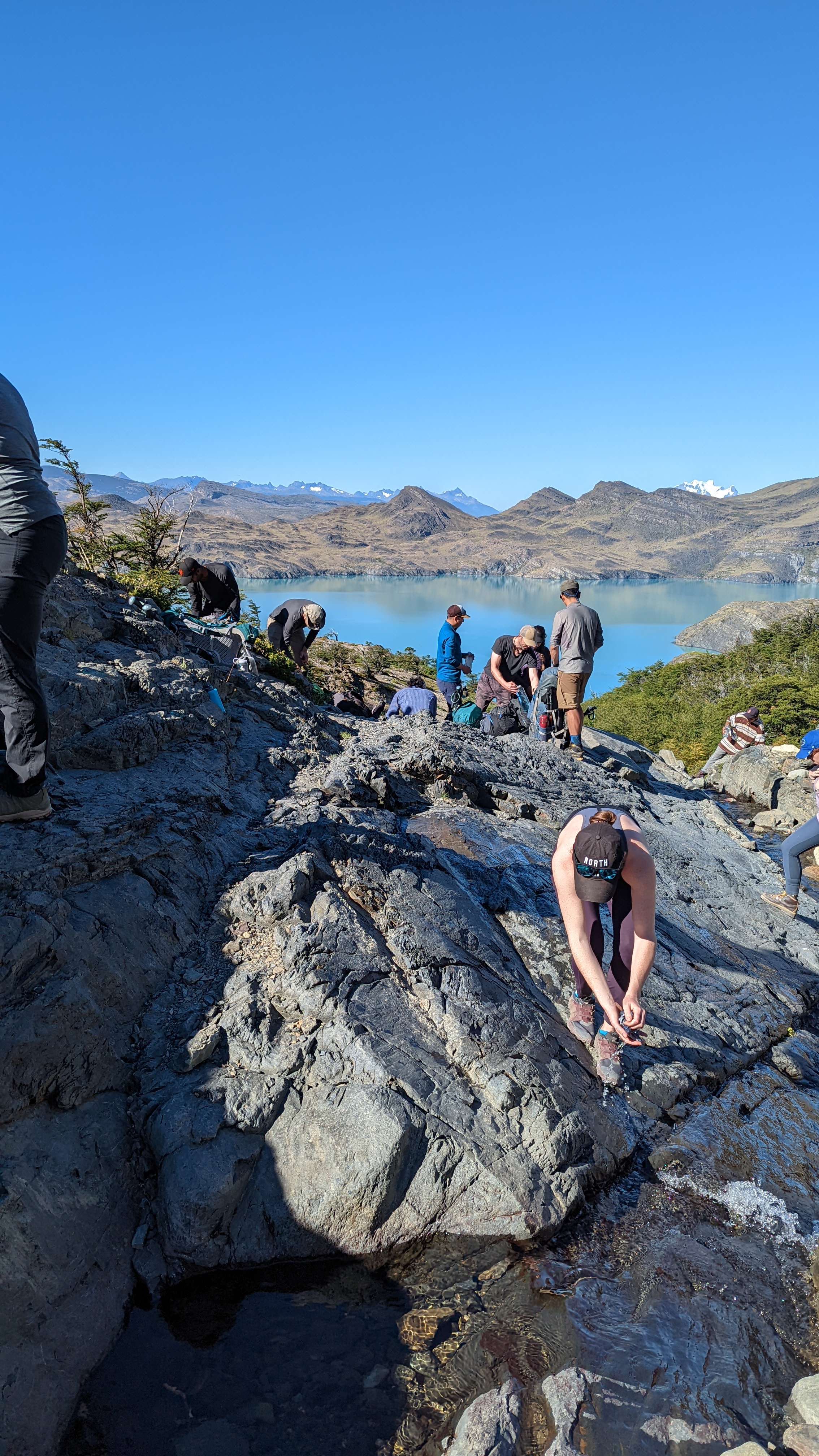 February 21 – We hopped on a little boat for a very cold ride to Glacier Grey. After a quick safety tutorial and gear change we were off to walk around a glacier for a while. We filled our water bottles with fresh glacier water and looked into deep and beautiful crevasses. And here’s the thing about hiking The W, it’s actually a W shape so we hike up the first section of the W and then you have to hike right back down, so at the end of the day we landed back a Paine Grande for the night.