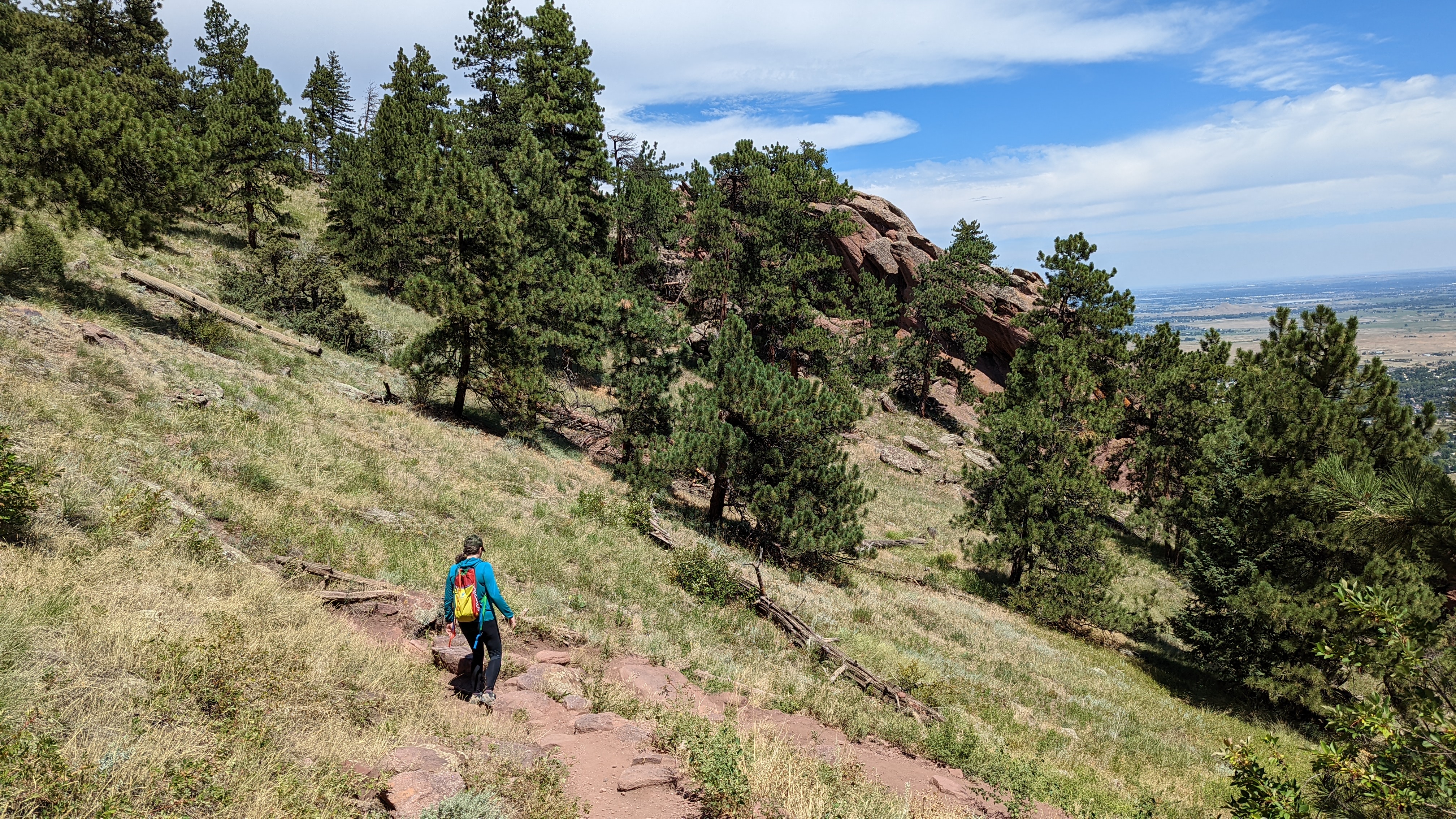 8/10 • The first side of this trail is great, through the forest and ending up at the top of Sanitas with nice views. The second half is relatively boring with a large busy trail in the open sun. If I did this again I would do it as an out and back rather than a loop. Difficulty – moderate