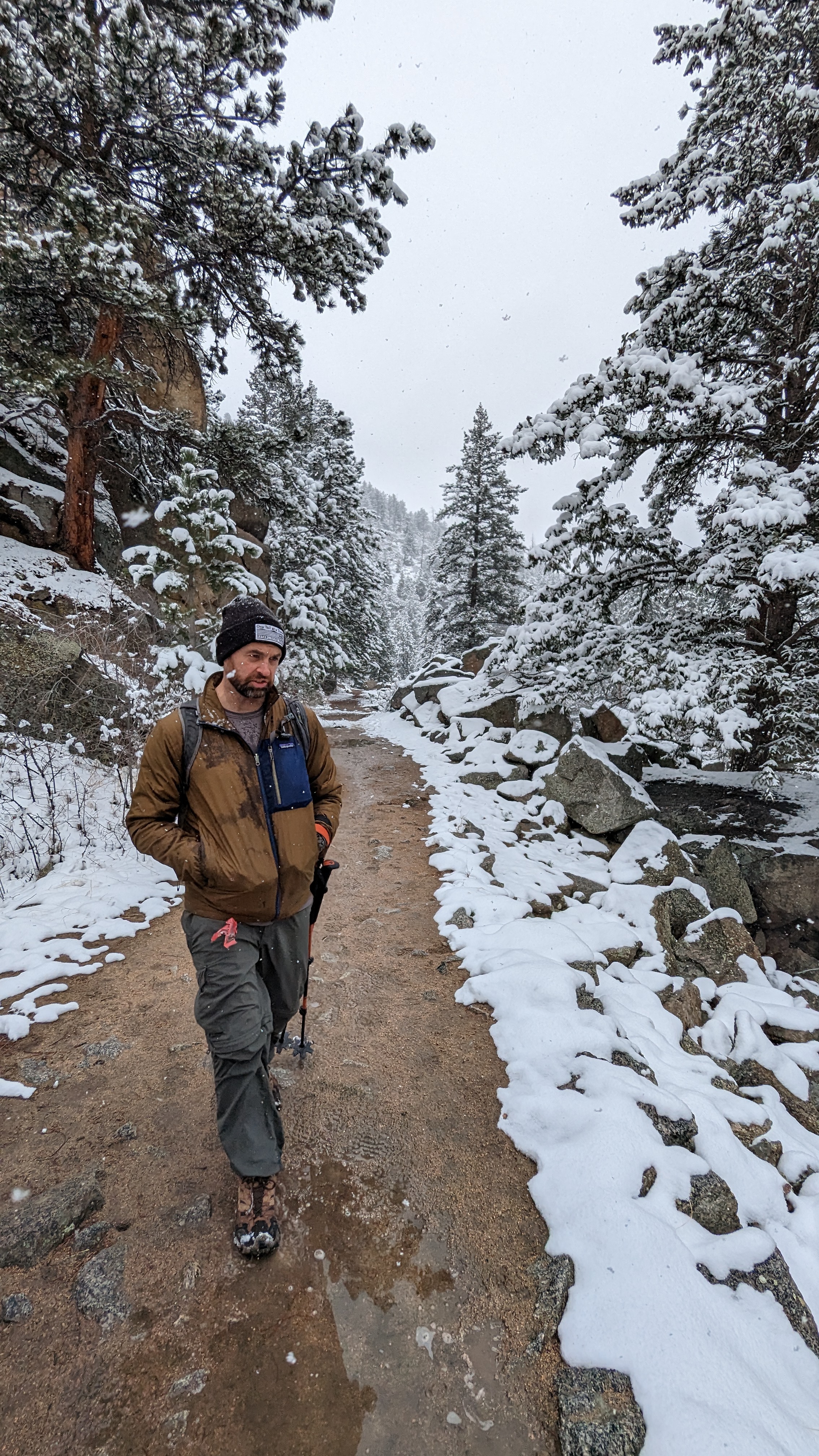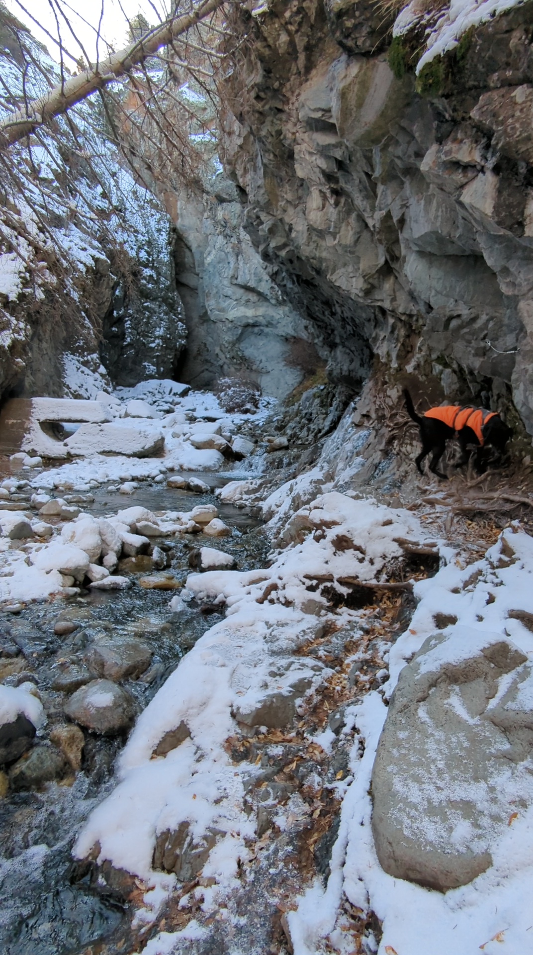 8/10 • We parked the van at the Zapata Falls campground so naturally we needed to check out the falls and the trail beyond. The weather was a little snowy so we just went as far as we could, the falls are early on, but we did end up turning around because of some fresh animal tracks + Franklin barking randomly. We didn’t want to run into anything out here. 🐻 Difficulty – hard