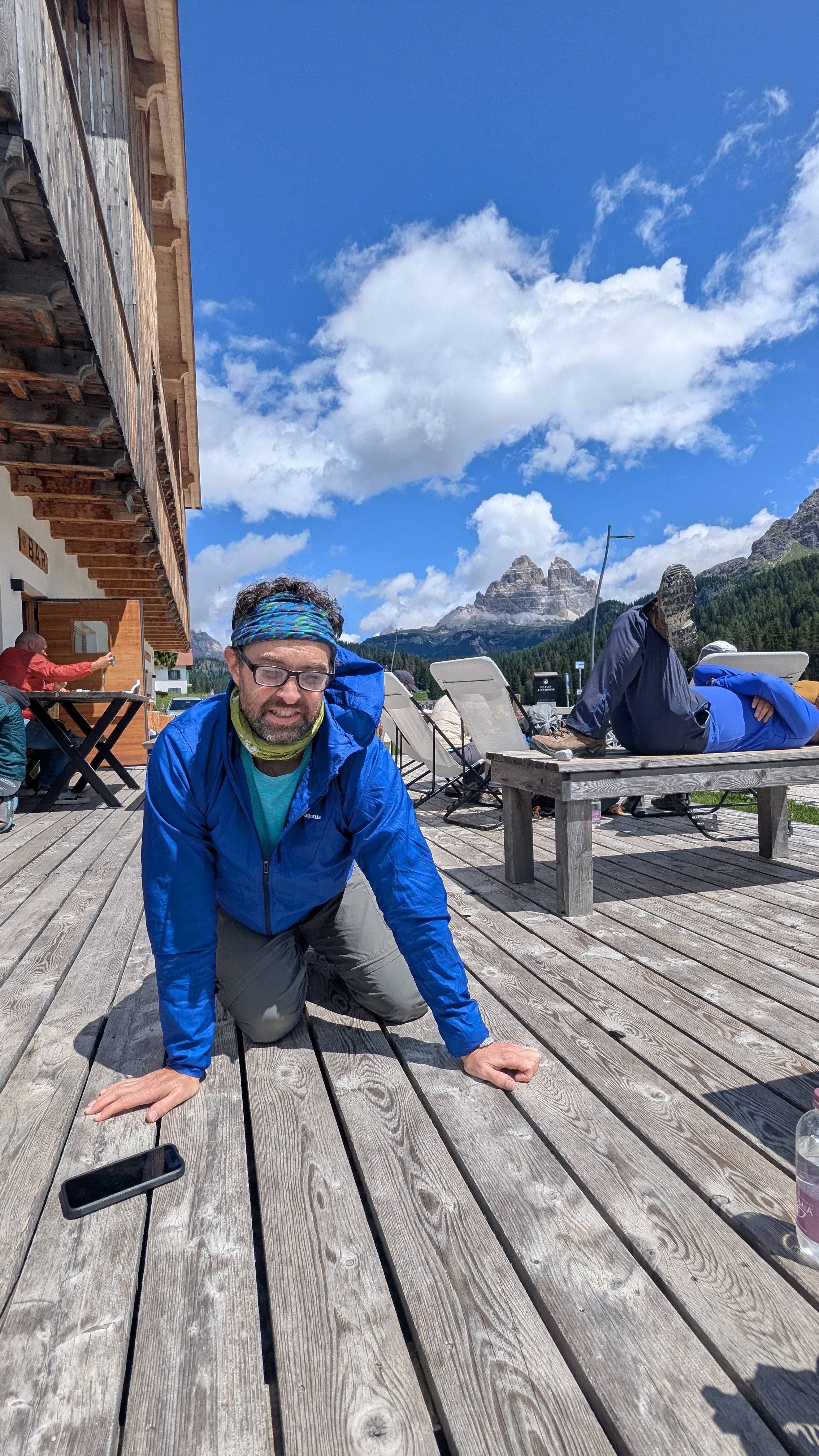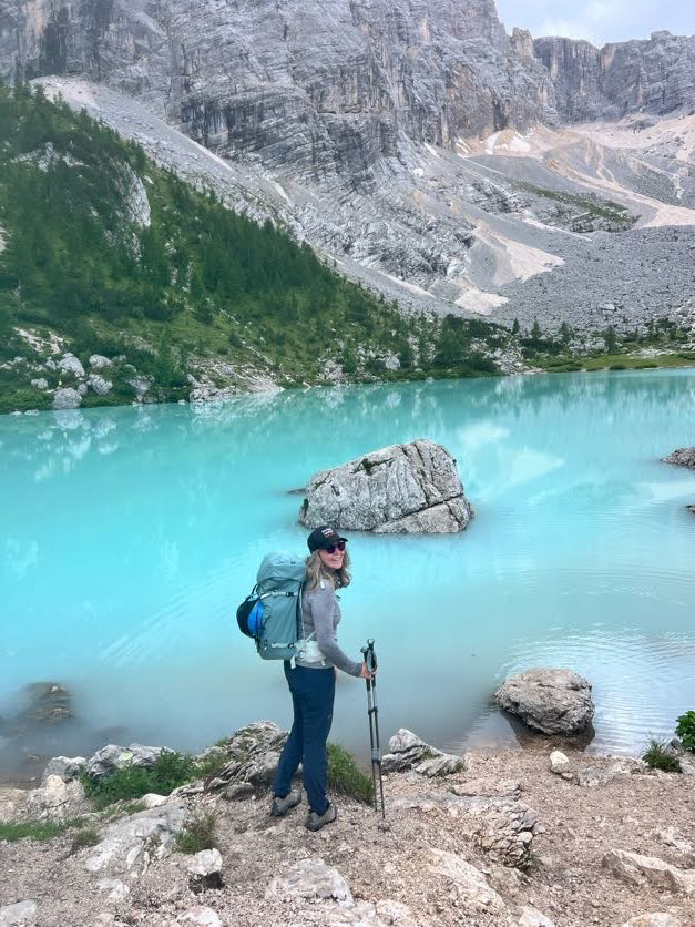 July 7 – Day three brought just a short bit of via ferrata and much more hiking. We took a ski lift down into a town, a bus to our next trailhead and then a fairly short hike to Lake Sorapis (WOWZA) and our refugio for the night. My favorite refugio of the trip both for its proximity to the lake and the pure joy the owner exuded hosting us.