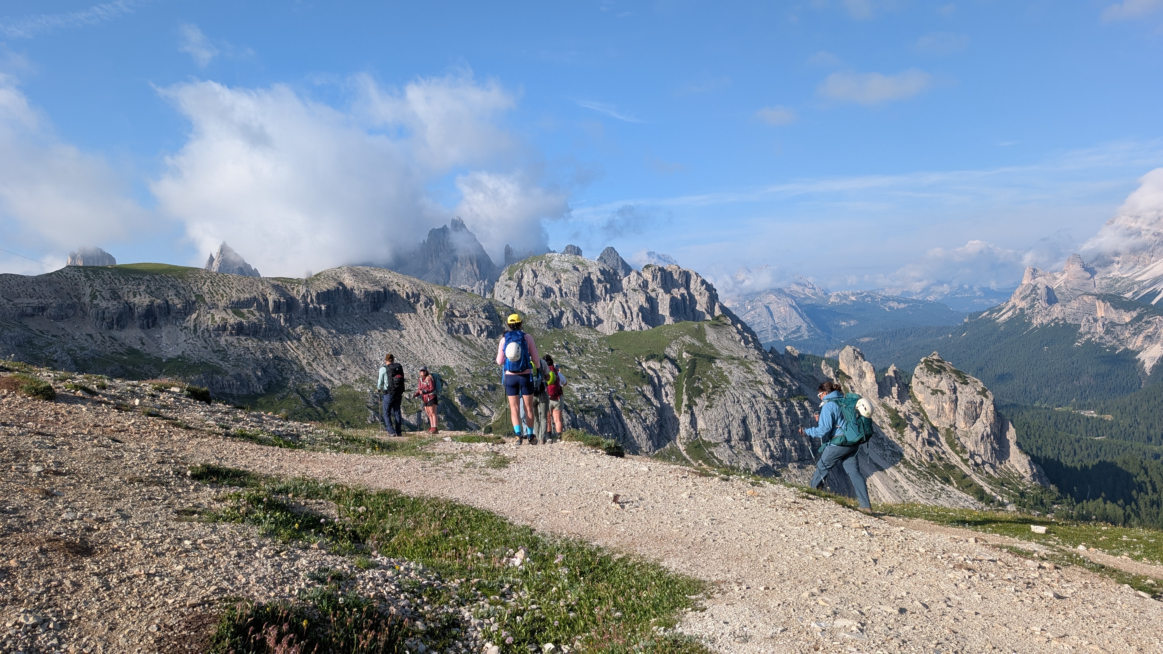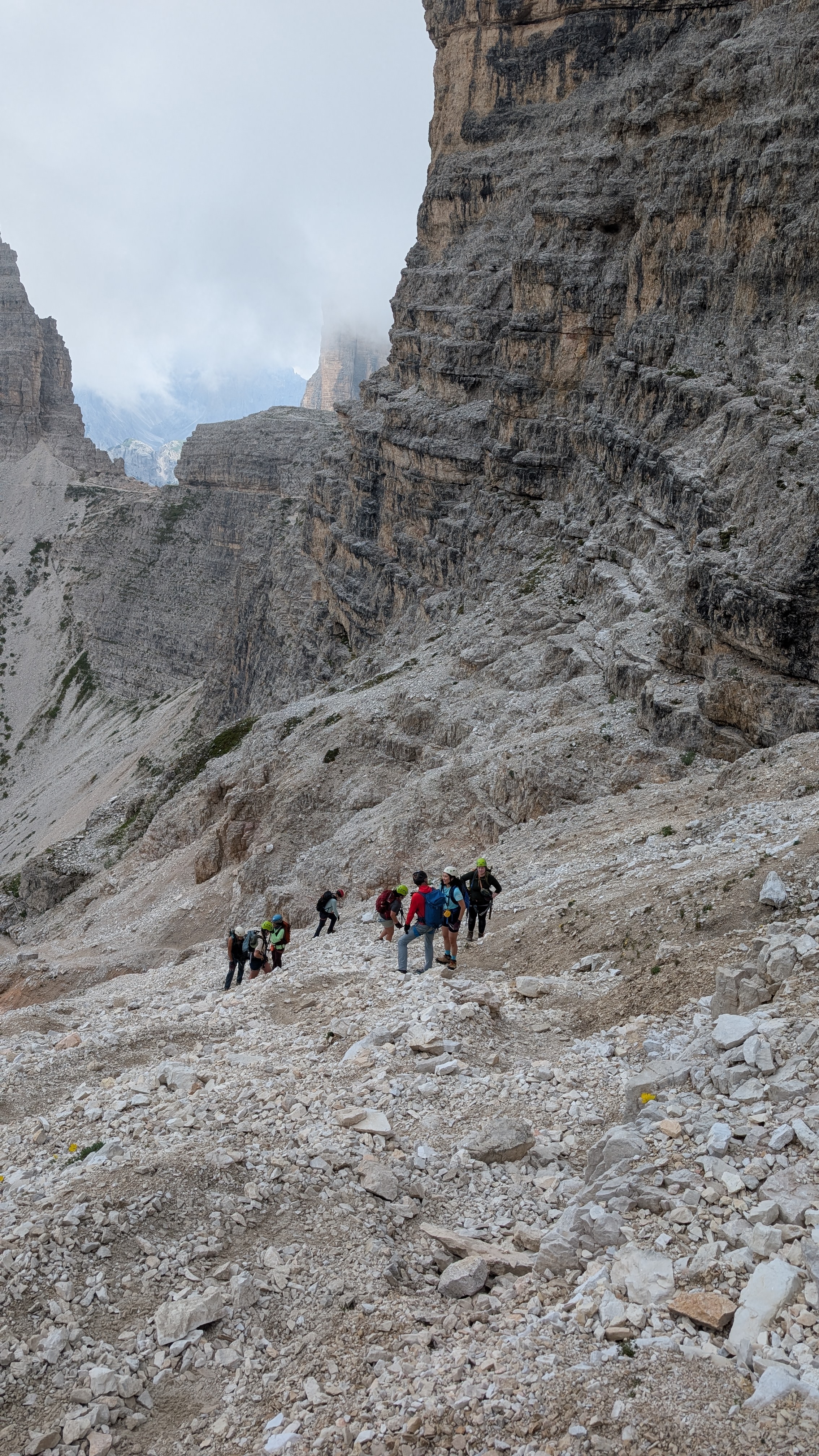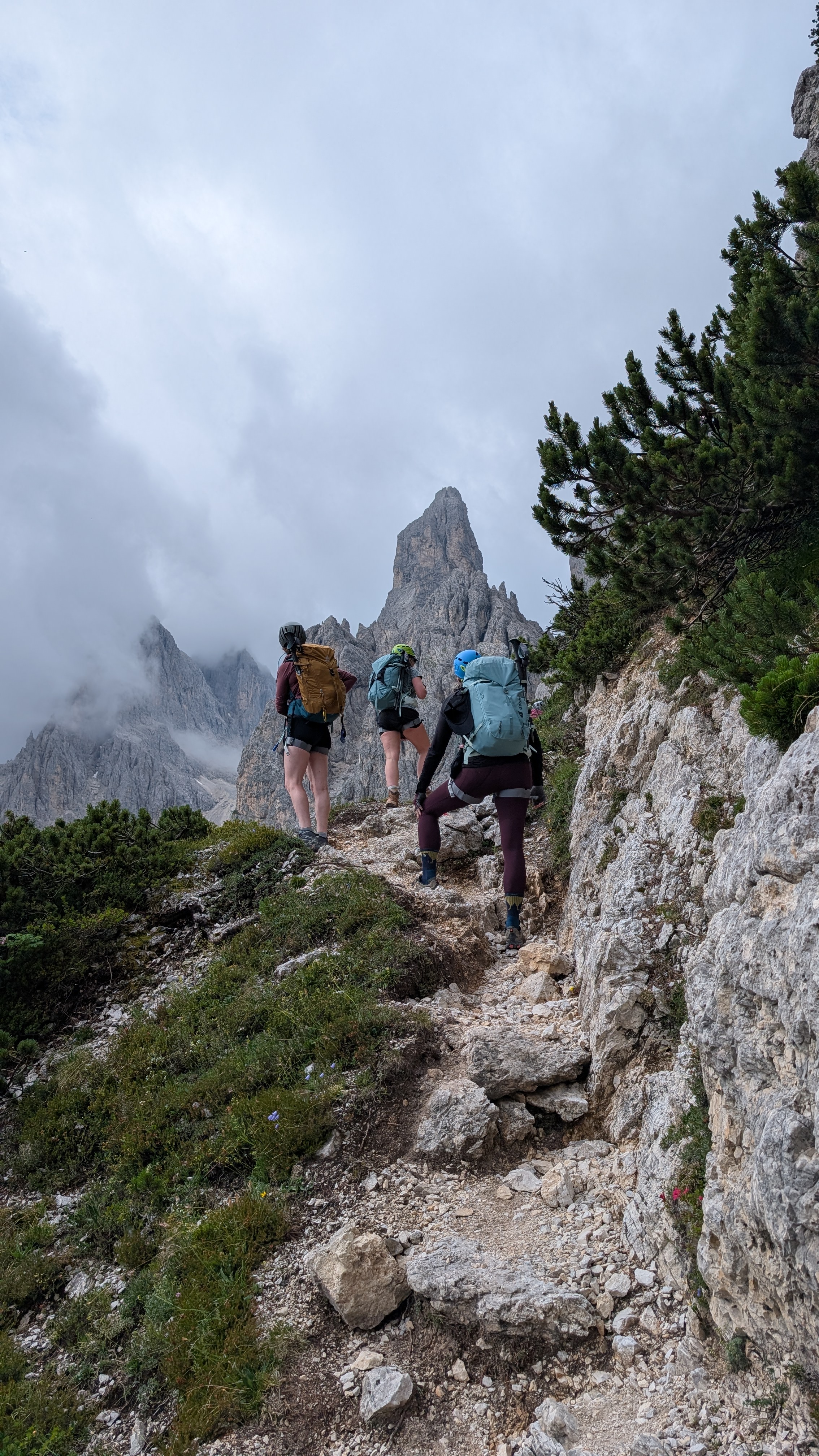 July 6 – More via ferratas and hiking await us as we make our way to the next refugio. The day started out a bit foggy but the clouds made for a super interesting landscape. Italy’s mountains are rugged and intricate and the views surround you no matter where you’re hiking making this area just a wonder to behold.